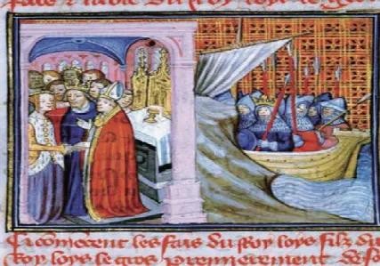 虽然弗里德里希二世其貌不扬,但举止十分庄严,头脑灵活,地位尊贵,抵达东方后,就连埃及的苏丹也为他送上了厚礼。在1225年,他娶了耶路撒冷的合法女王——布里耶纳的约翰的那十三岁的女儿伊莎贝拉二世,名正言顺地接手了岳父的权力成为国王。后来,伊莎贝拉二世生下儿子康拉德后死于产褥热,弗里德里希二世彻底控制了耶路撒冷王国的至高权力。