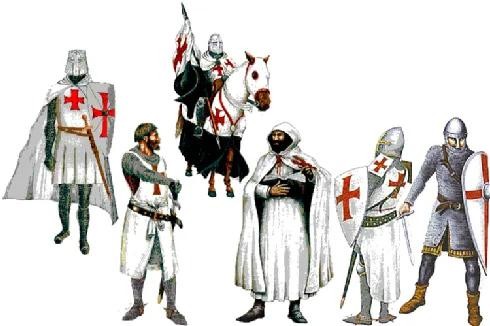 圣殿骑士团,全称为圣殿的贫苦骑士团,是一个为了保护基督徒朝圣者的人身安全而诞生的军事修会。建立于1119年,因其发源地在圣殿山上,骑士们居住于圣殿隔壁的王宫而得名。他们的制服是白色披风上饰有一个红色十字架,象征着基督为人类流的血。圣殿骑士团的旗帜是一面朴素的黑白两色大旗,他们的原则是守贞、服从与清贫,大部分时间里都与教宗保持了良好的关系,使得骑士团可以建立私人礼拜堂,并通过收取什一税而不断积攒财富。