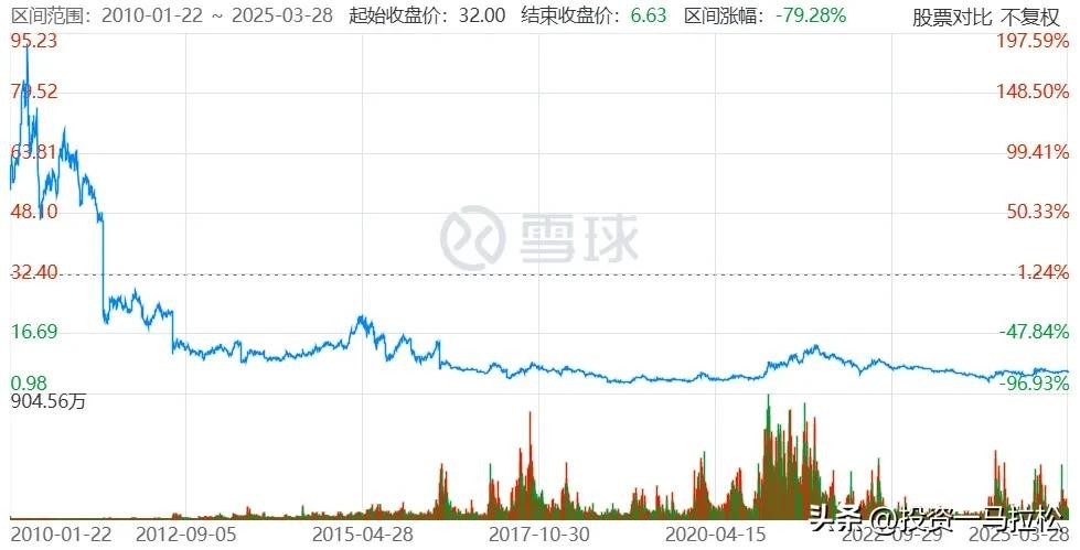 持股市值75.74万元,市值+分红=79.71万元,本金29.25万元,持有15年,股价下跌88.67%,总计盈利1.72倍,年复合收益率6.46%。