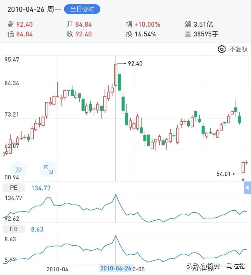 先来看下上市至今的股价走势,此时此刻,只能吟诗了,疑是银河落九天,滚滚长江东逝水。