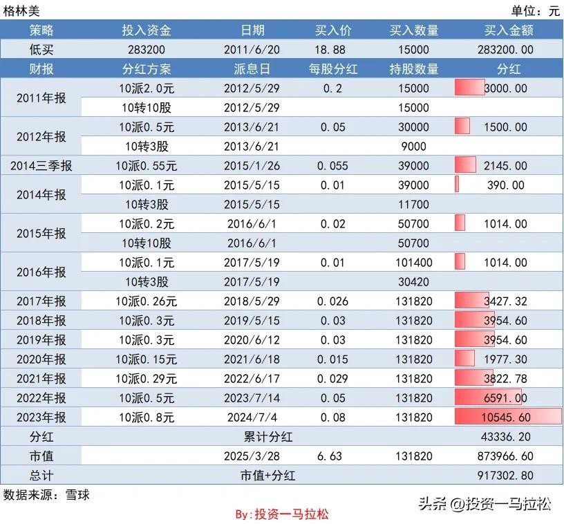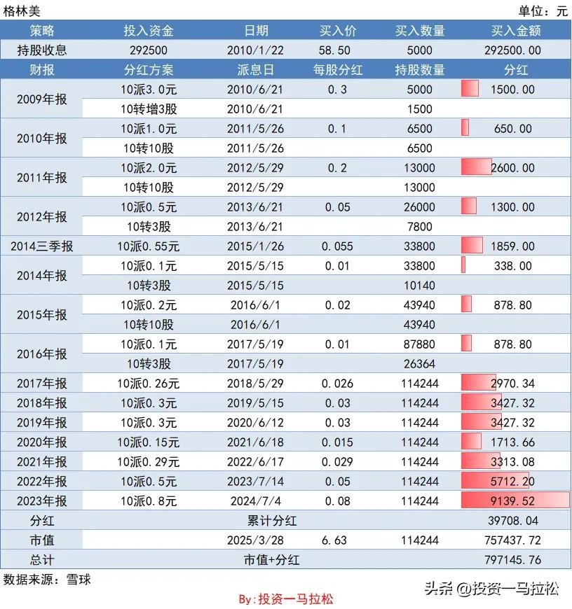 通过财报分红转股,持股数量由最初的5000股积攒到11万4244股,买1送21.8。