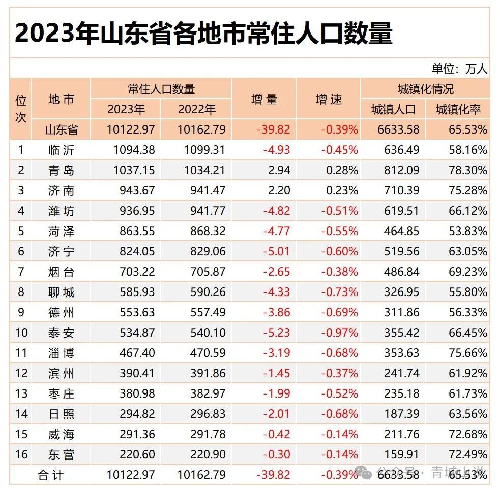 山东省16座城市常住人口排名:临沂第1,济南第3,烟台第7