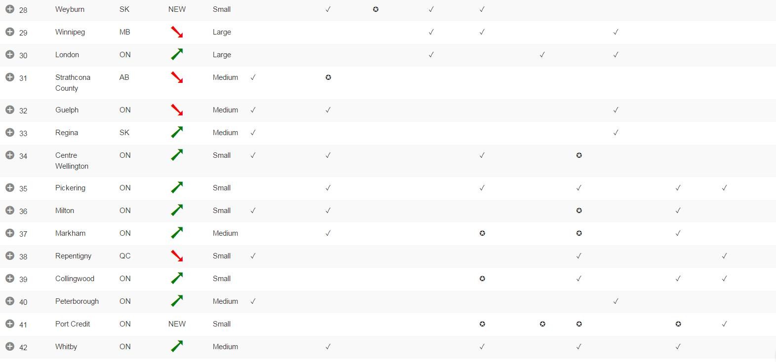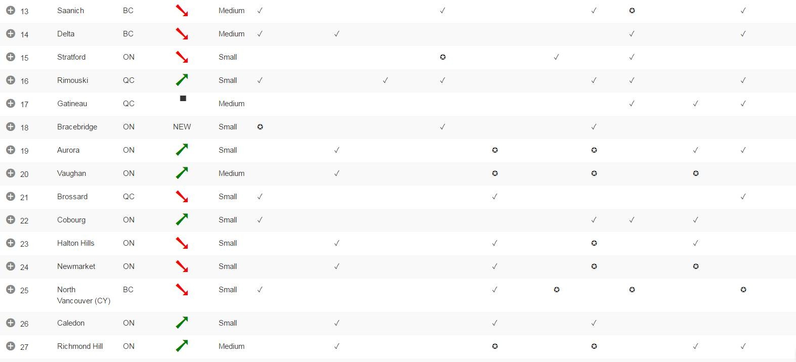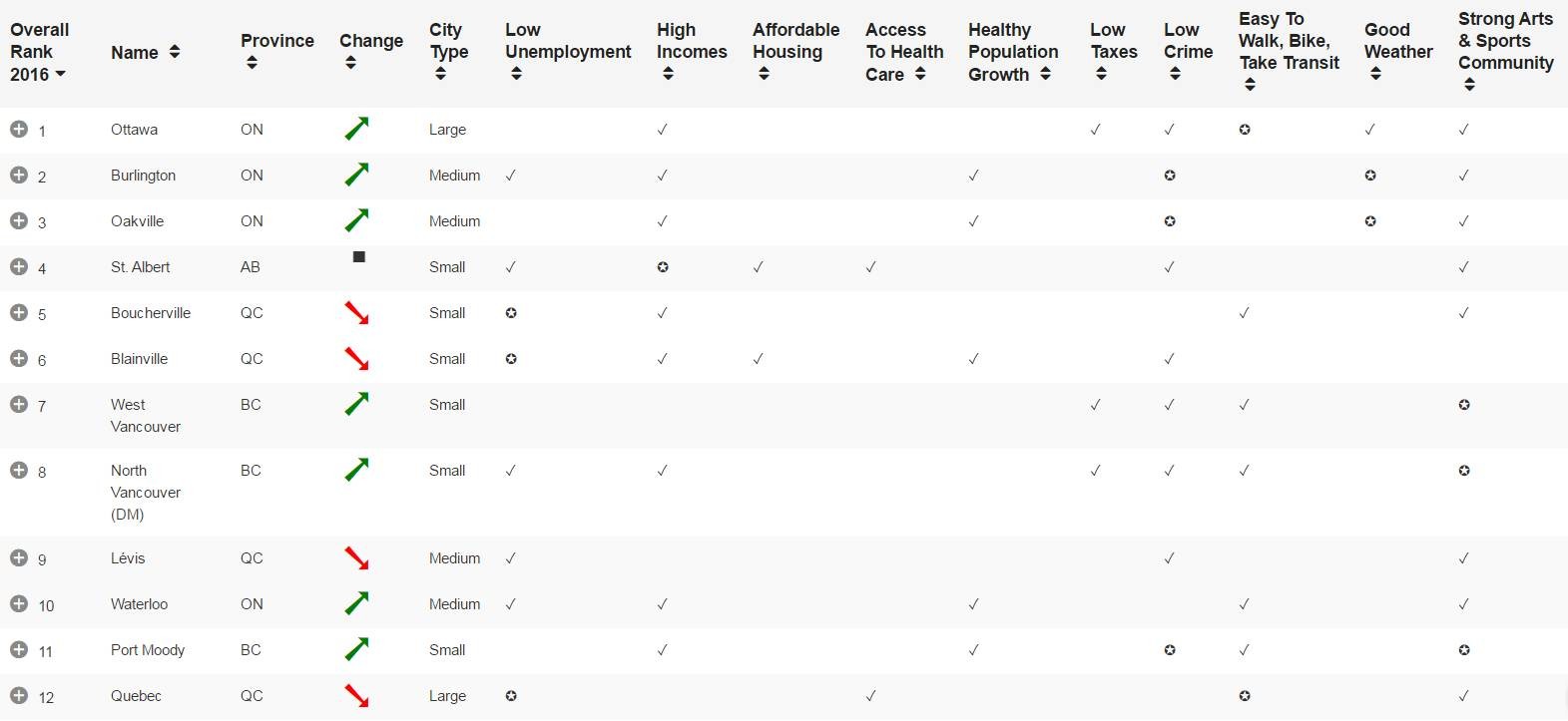 从表格中也可以看到,首都渥太华以绝对的优势排在第一,而一些小城市也以家小业小幸福指数高名列前茅。由此可见在小城市也未必会不好,就业率高,消费水平低,幸福指数也是蹭蹭的上涨呢。