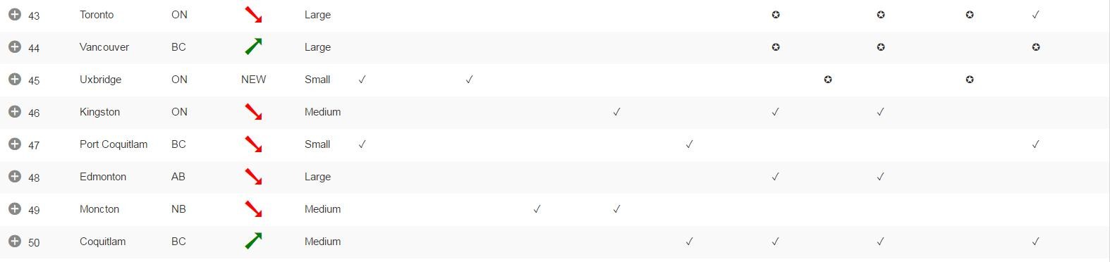 加拿大各大城市综合排名,多伦多的成绩有点