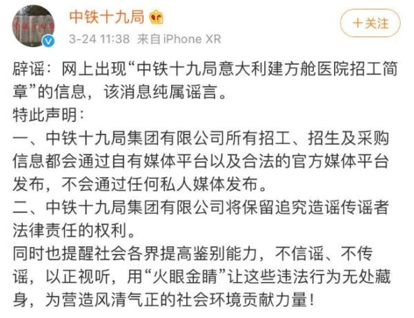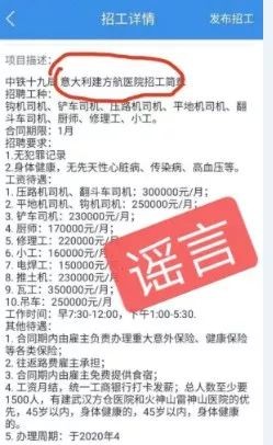 一则“中铁十九局意大利建方航医院招工简章”