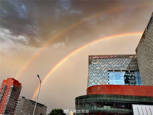 【急雨过后,#北京彩虹#来啦!】8月26日下午,北京一场急雨骤起,阵雨过后,天空出现美丽双彩虹!你看到了吗?(宋明亮 龙建旭)