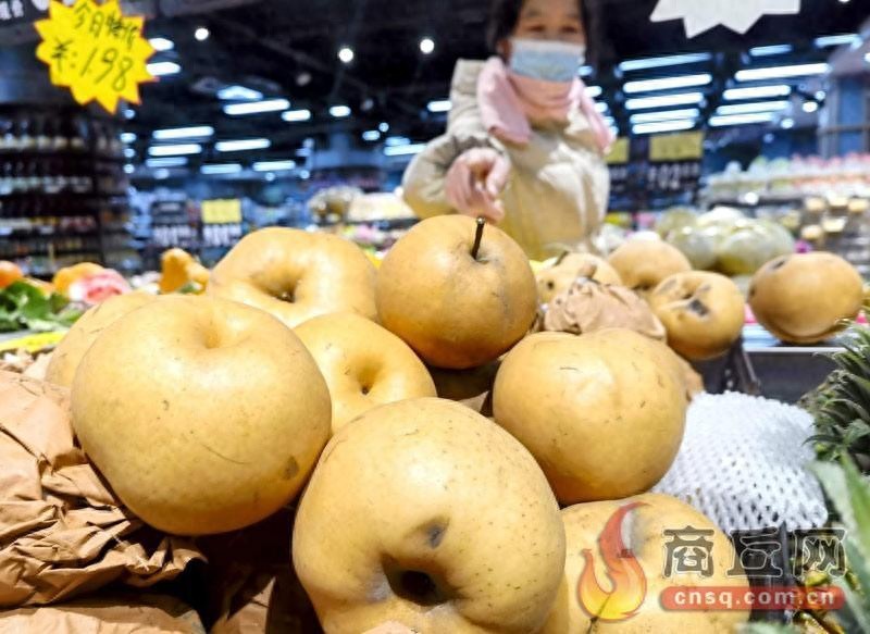 12月12日上午,在民主路旁一家超市里,市民正在选购黄梨。记者在超市了解到,目前黄梨比较热销,价格每斤2元左右。购买黄梨的刘大姐告诉记者,黄梨切成片,再配点白萝卜和葱段熬成汁,服用后能起到止咳效果。
