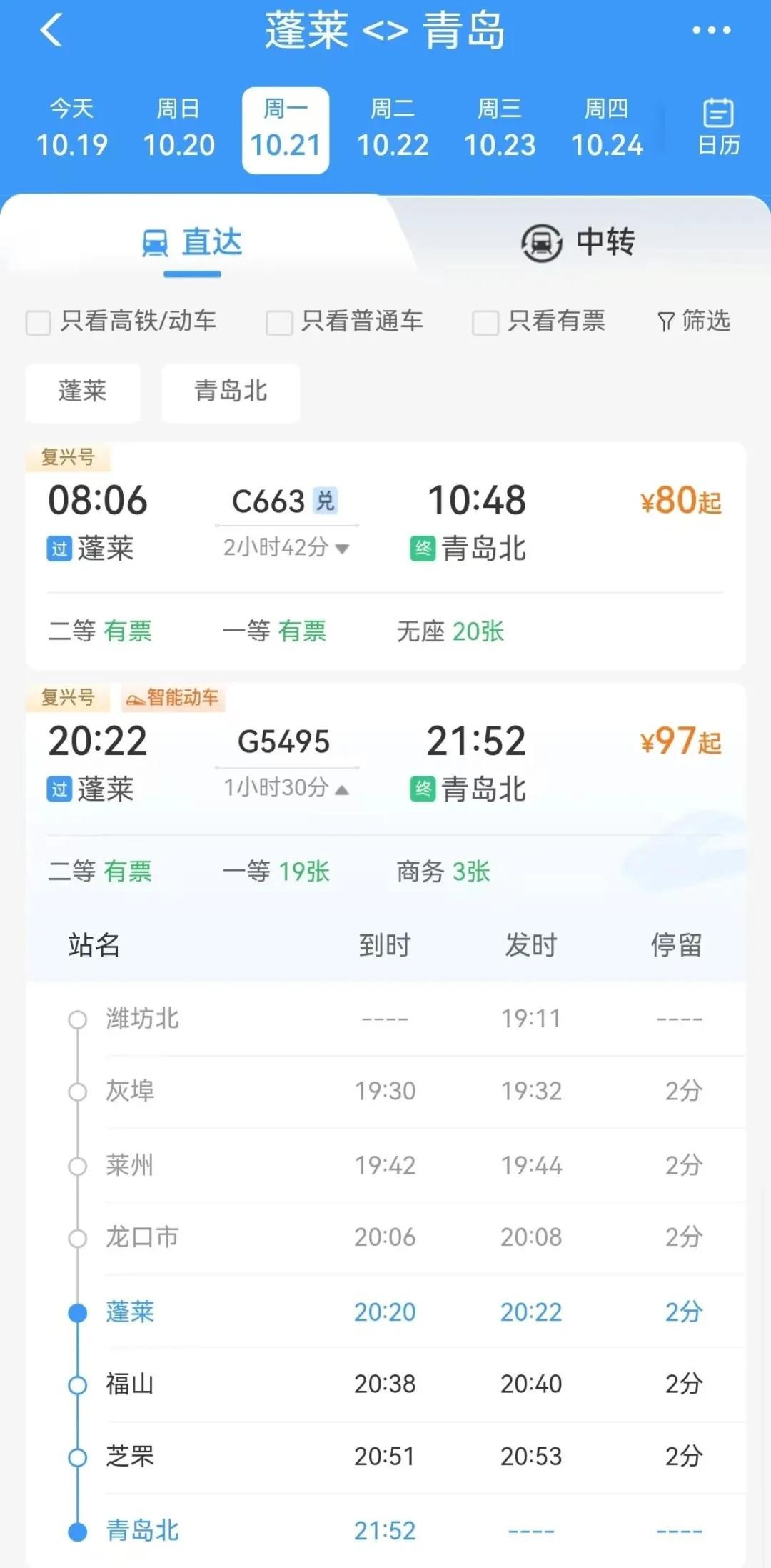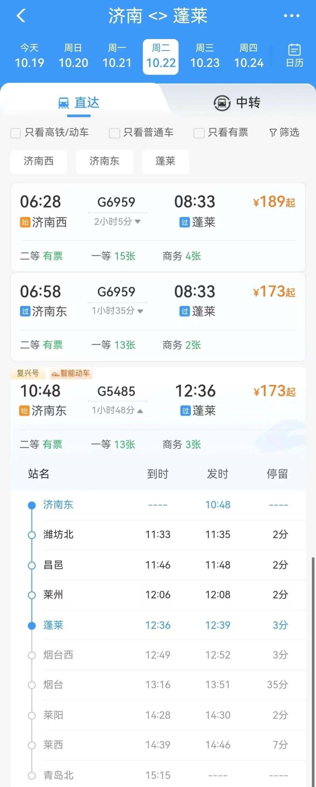 蓬莱直达济南、青岛