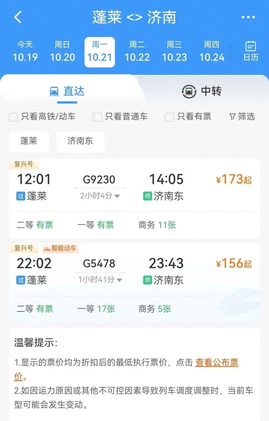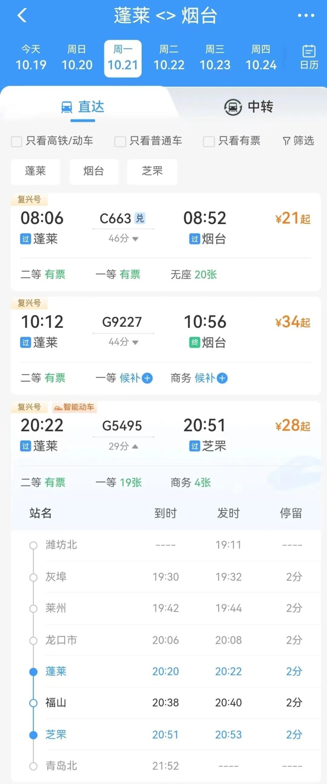 21号车次及票价已出