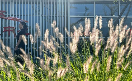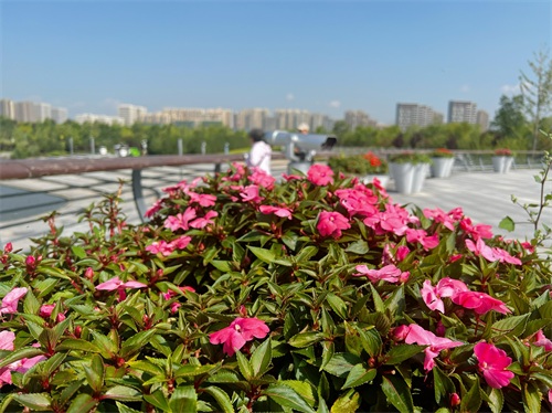 9月17日,初秋的太原天高云淡,游人在晋阳湖公园参观游览。一年四季,晋阳湖公园有它不同的美。