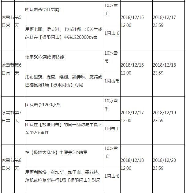 冬境乐园活动期间,自12月11日至1月10日,召唤师每天都将接到一个持续3天的每日任务。选择通过【极限闪击】地图任务条件完成任务,可额外获得闪击币奖励,可用于兑换极限闪击模式图标和特效奖励。