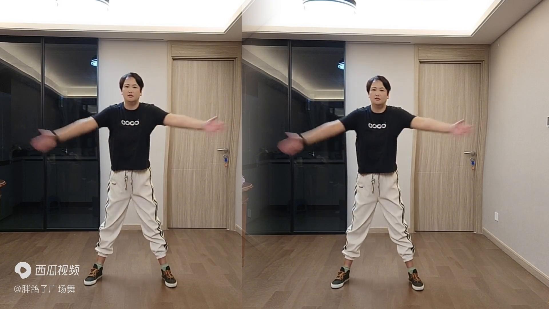 4. 动作三:抱肩甩手。中拍往后打开,这个动作可以灵活肩部开关,同时打开胸腔,每次做五十次。