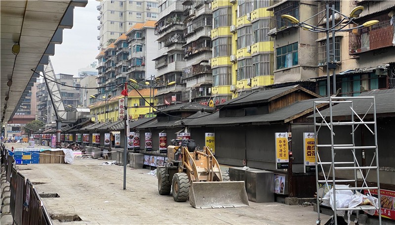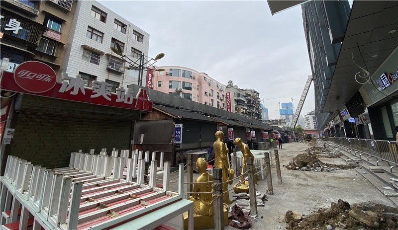 记者从小吃街西入口进入后,这里的场景却是另一番景象,小吃街正在进行升级改造!