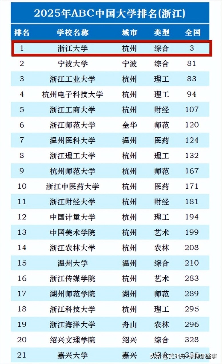 2025年浙江大学排名浙江省第1位,全国第3位。