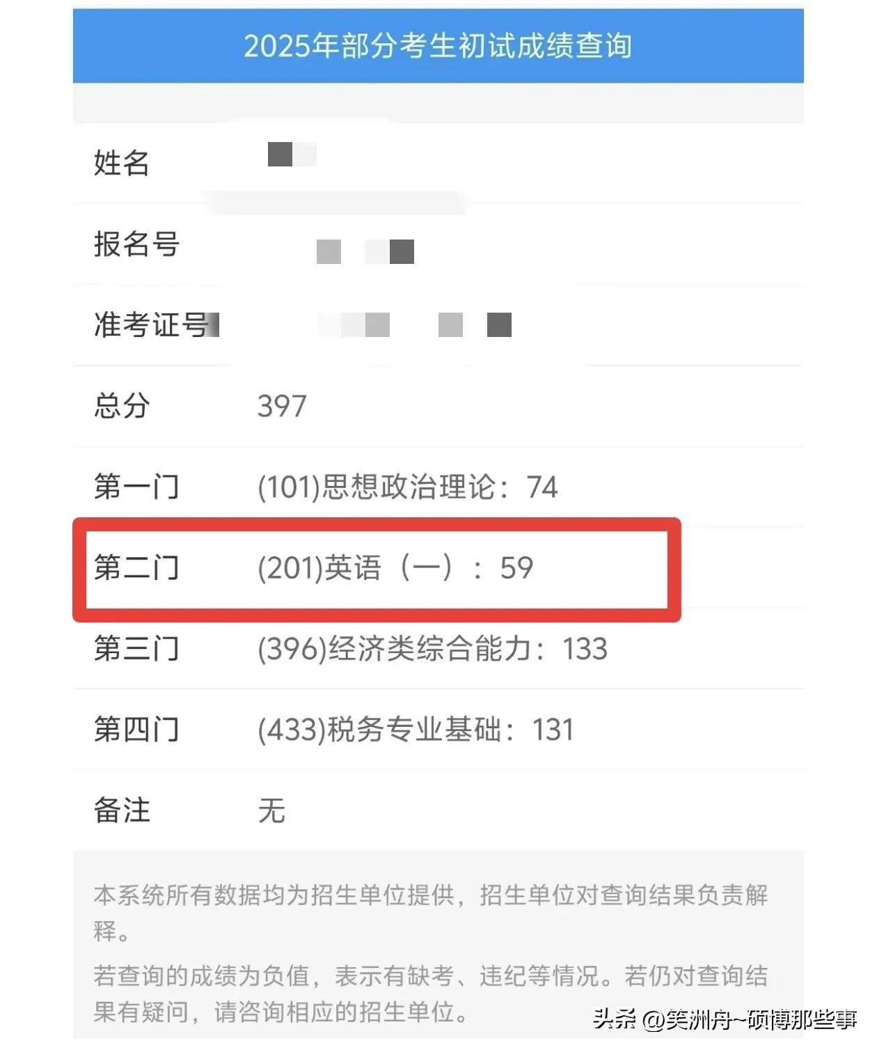 浙江大学考研总成绩397分,英语59分没过线,无缘复试!