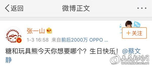 (蔡文静生日张一山送祝福)