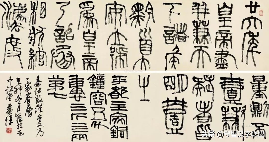 张:邓石如的篆书、隶书是好的,而于草书邓石如则不会写。不会写草书的表现就在于他不懂草书的笔法,往深里究,就是没有研究墨迹—所谓对“帖”学的研究用功不够。他的印章中行草边款刻得也不高明。