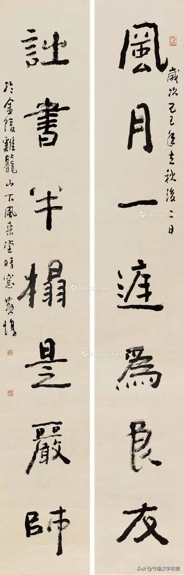 黄:有的人是以刻和写来区分,我认为不够。要看观念,看取法对象是什么。从培养书法家方面说碑和帖没什么差别,都可以写出优秀的书家来。我们没有理由讲写碑的就比写帖的差,不好这样讲。但应该注意碑与帖供给的养料是不同的,譬如说评价邓石如,你不要讲他什么都好,说他的篆书和隶书,或者他写的楷书有价值,我不反对,你非要说他什么都好,那我拿他写的《海为龙世界;云是鹤家乡》给你看,他根本就不懂行草,从笔法上也不懂,字形上也不对,甚至完全把帖的内涵的东西破坏掉了。