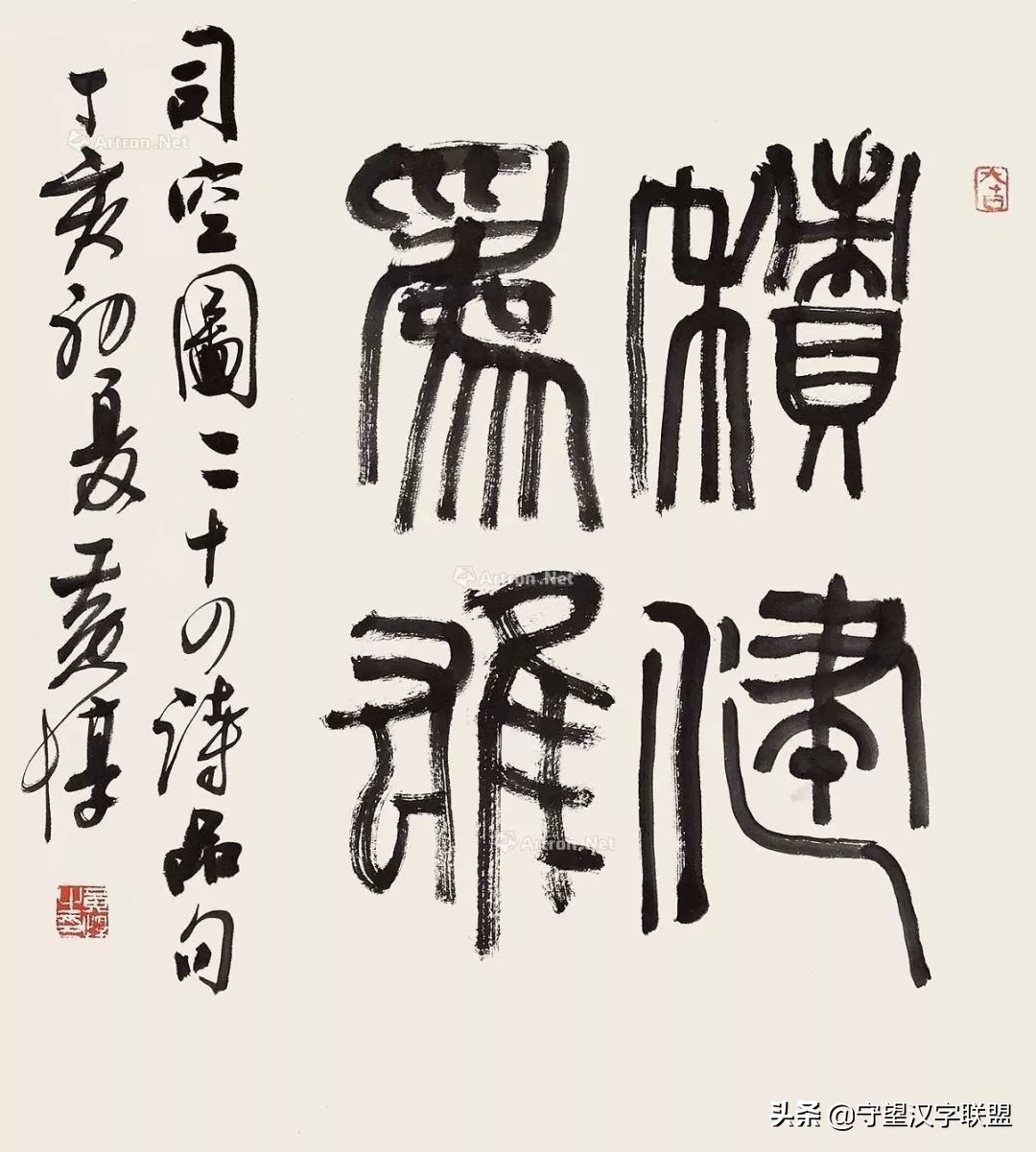 黄惇先生之所以在书法、篆刻艺术创作上能取得巨大的成就,自然也是和他较为全面的知识构成、对艺术自身的广泛而深刻认识以及独立的艺术人格不无关系。艺术不同于技术,在中国传统文化中,艺术一直是“文之艺”而不仅仅是“艺之术”,因而可以说“文心”乃艺术之魂。苏东坡云:“作字之法,识浅、见狭、学不足,三者终不能尽妙”。从表面上看,创作主体的学识和修养以及对于书法篆刻艺术理论的理解看似与艺术创作没有直接的关系,似乎艺术创作只是一个技术层面的问题,但实际上,创作主体的学识和修养以及对于书法篆刻艺术理论的认识程度将直接影响到他对艺术的认识、审美理想的建立以及技法的修炼,因为艺术创作只不过是“文心”的物化。这也是强调技道双修、功夫在字外原因所在,而并不是为了标榜书家所谓的一个文化的身份。在我看来,当代书法所出现的许多乖谬皆与缺乏“文心”不无关系。
