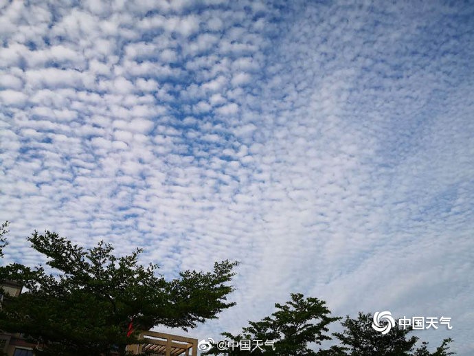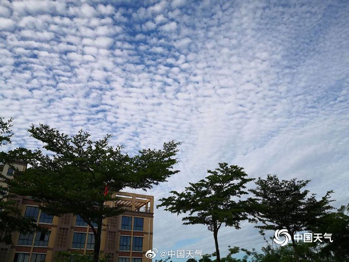 海口天空现大面积“鱼鳞云”