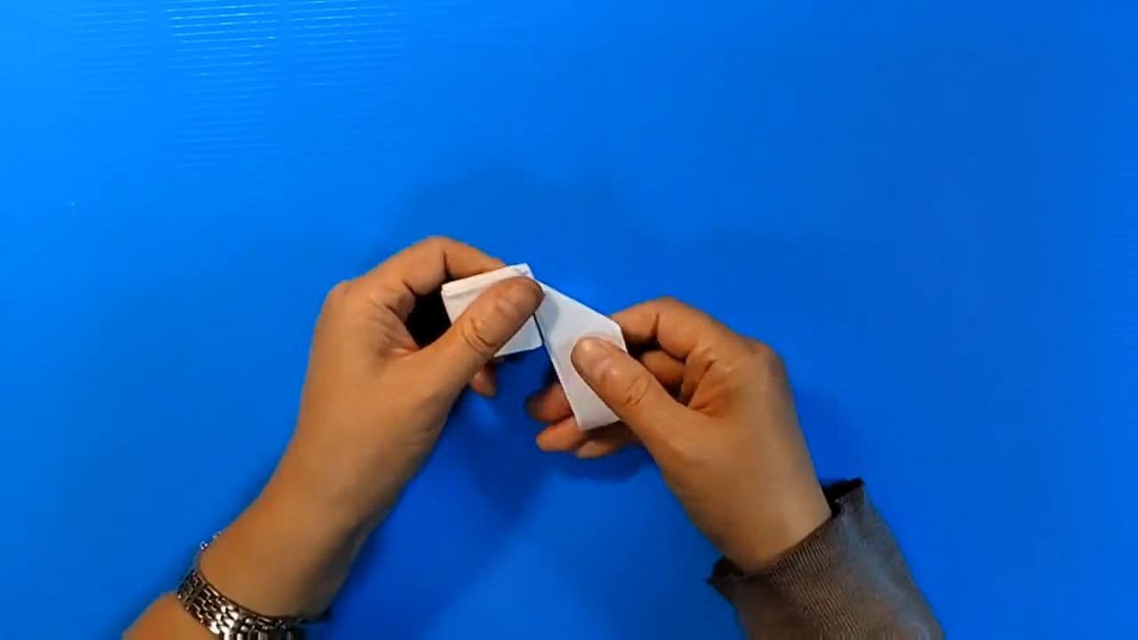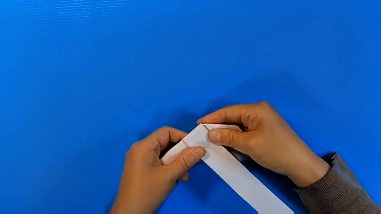 ·再需要一小条纸,按刚才的步骤将它对折再对折。折好后沿枪筒的下部到枪把的下部连接起来。
