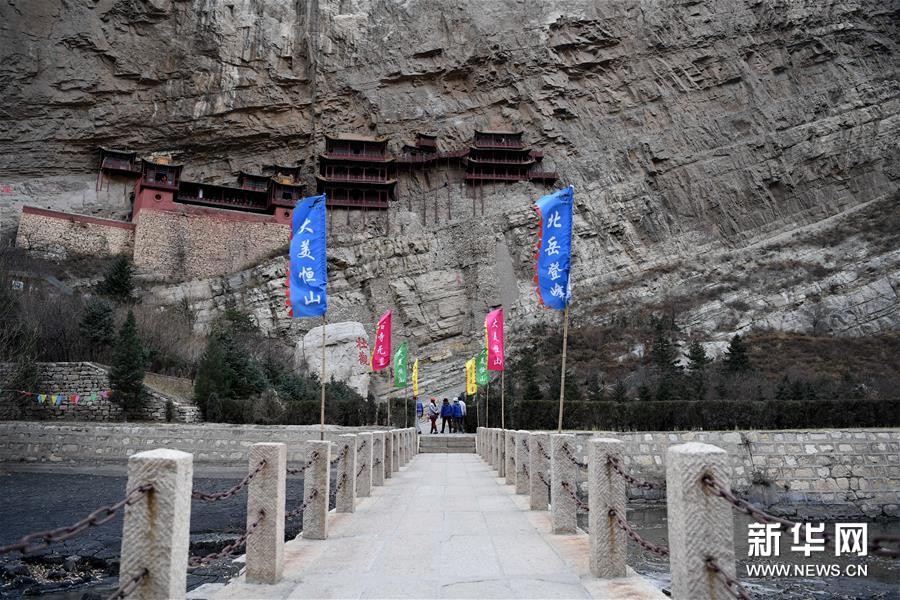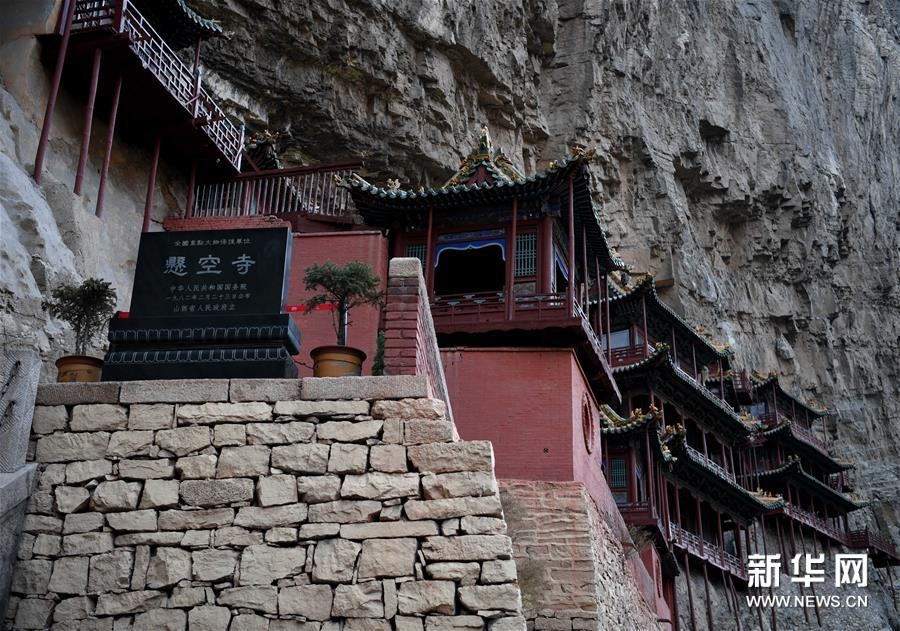 位于山西省大同市浑源县的悬空寺,坐落在北岳恒山翠屏峰的悬崖峭壁间。该寺始建于北魏后期,迄今已有1500多年的历史。 新华社记者 杨晨光摄