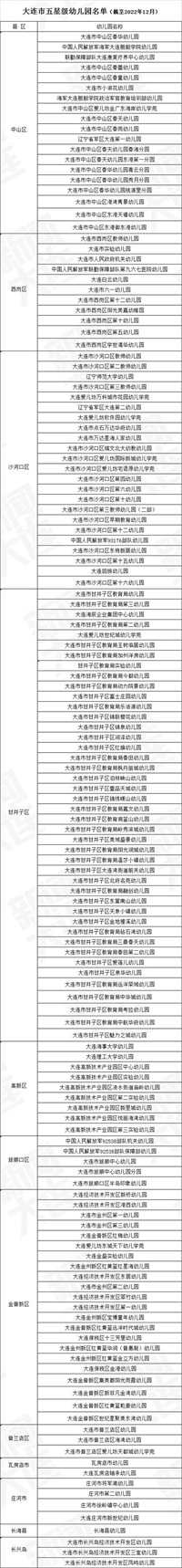 大连市五星级幼儿园名单