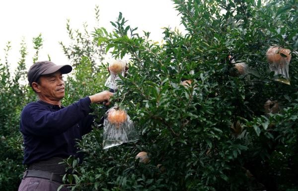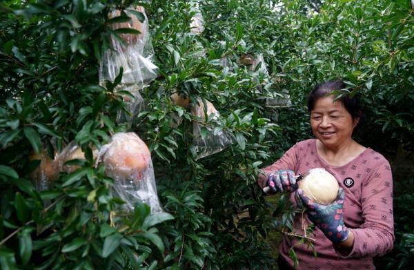 金秋时节,陕西省西安市临潼区进入石榴采摘旺季,种植户抢抓农时进行采摘、销售。据了解,临潼是我国石榴最早栽植地和全国石榴主产区之一,现有石榴种植面积8万余亩,年产优质石榴8万余吨。
