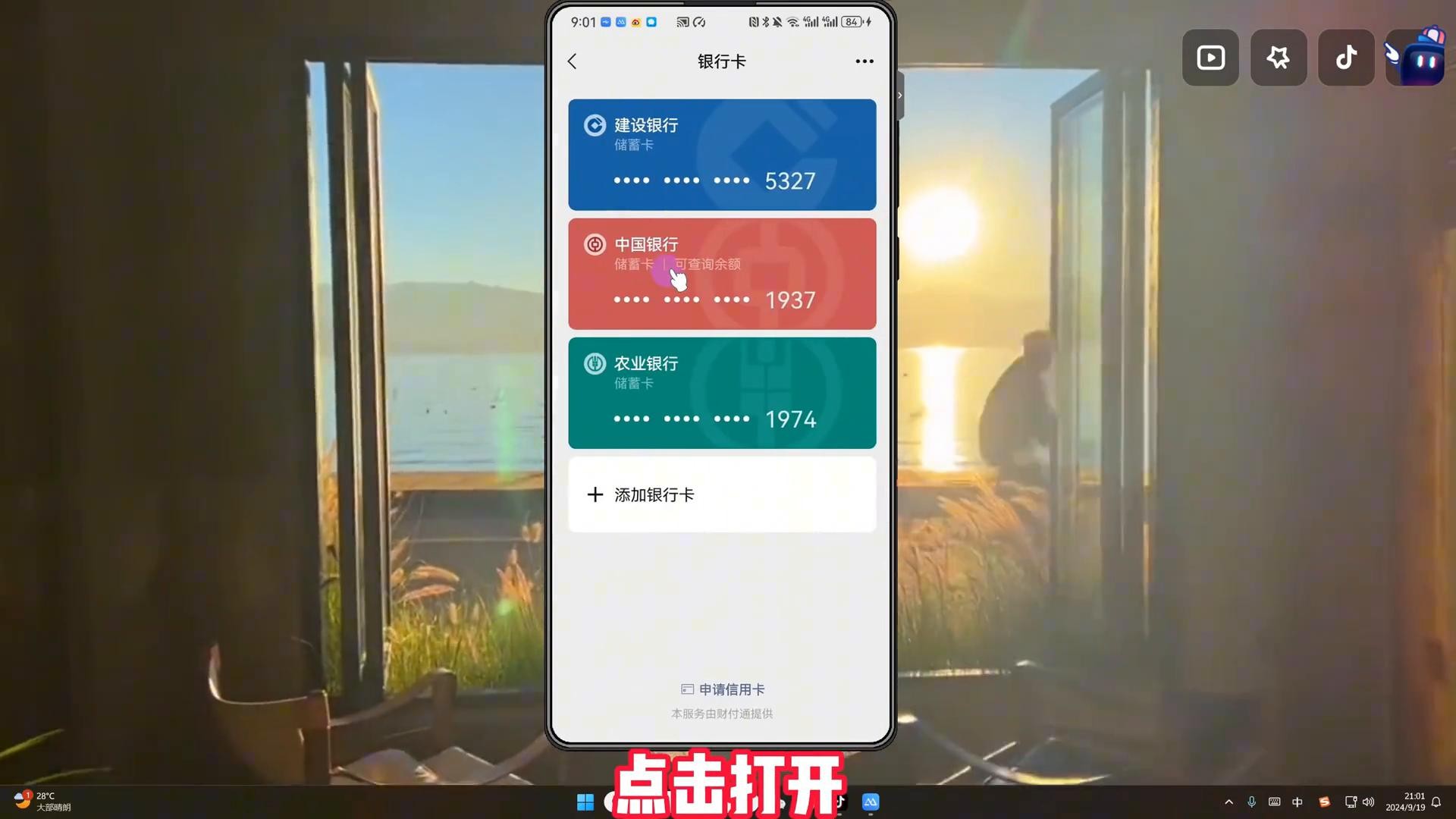 6. 在这里选择你需要解绑的银行卡,例如农业银行,点击打开。