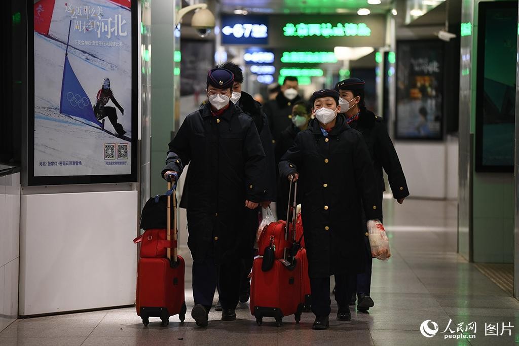 2023年春运大幕正式拉开,乘务组进站。人民网记者 于凯摄