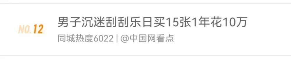 11 月 17 日话题 # 男子买了张顶呱刮刮出 100 万 # 冲上热搜,让不少网友羡慕不已,然而热搜上的另一条新闻让人更为吃惊,# 男子沉迷刮刮乐日买 15 张 1 年花 10 万 #。