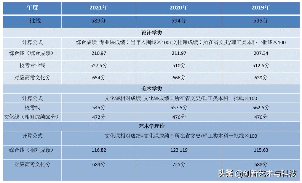 语文、英语单科过线,2021年设计学类刚过专业线情况下需要文化654分,美术学类考生文化分过472分情况下需校考545分,艺术学理论在文化素养测试过线的情况下高考689分能被录取。