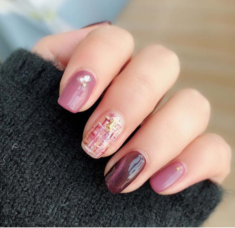 说到秋冬怎么能少的了今天很火的毛呢款的美甲呢,温柔的焦糖色搭配上珍珠,再用白色搭配焦糖色画出毛呢格子,真的是让人看起来就觉得很温暖呢,紫色猫眼搭配同款浅紫色再画出毛呢格子,看起来时尚又温柔,而且紫色真的超级显手白,小仙女们快去get同款吧。