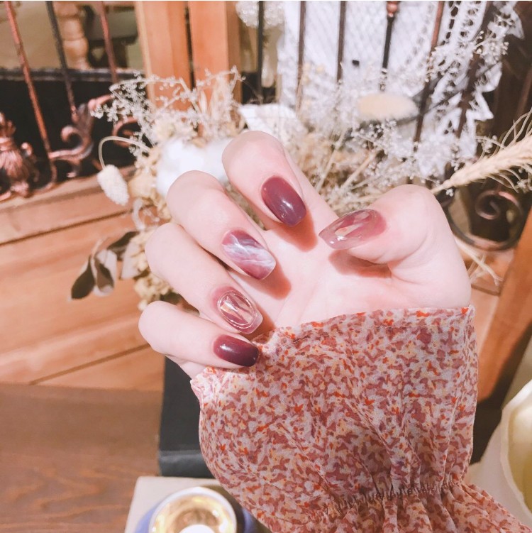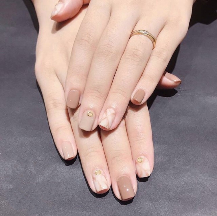 秋冬真的很适合做奶茶色美甲,简单的裸色再搭配上各种闪闪的小钻或者跳两个亮片,真的是很显气质,简约大方,再配上同色系的大衣,真的很吸引人了,平时喜欢亮色的小仙女也可以试试奶茶色!在随意就展现出迷人的日系风....