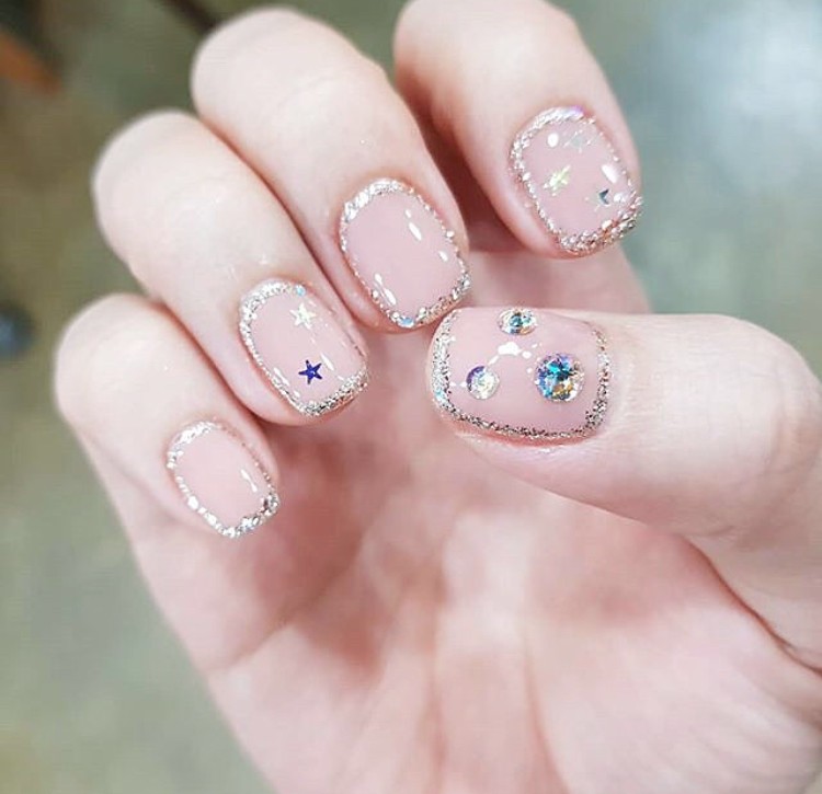 喜欢简单又想要精致的你一定要试试这一款美甲,我自己超级喜欢,很适合上班族简单的裸色或者透明打底,没有彩色那么张扬,搭配银色或者金色包边让裸色显得不那么单调,再配上几个闪亮的小钻,简单又精致,大家赶紧去试试吧。