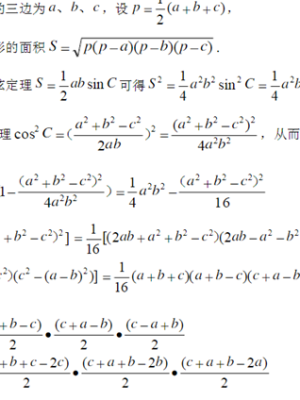 第二步,则这个三角形的面积面积的平方,即S2= p(p-小学a)(p-b)(p-c)。
