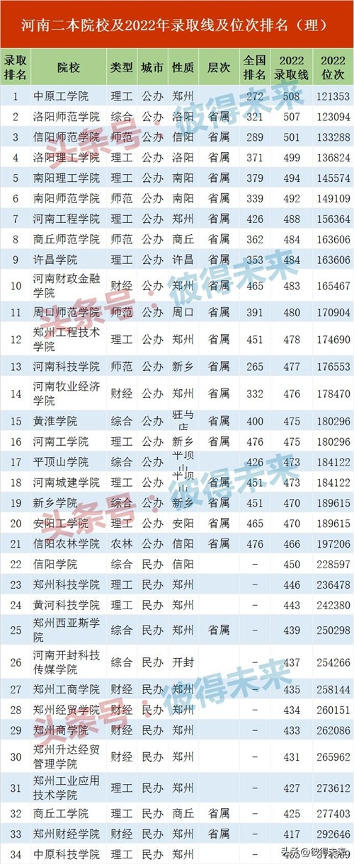 34所河南二本大学排名,20万位前可以选择公办二本院校