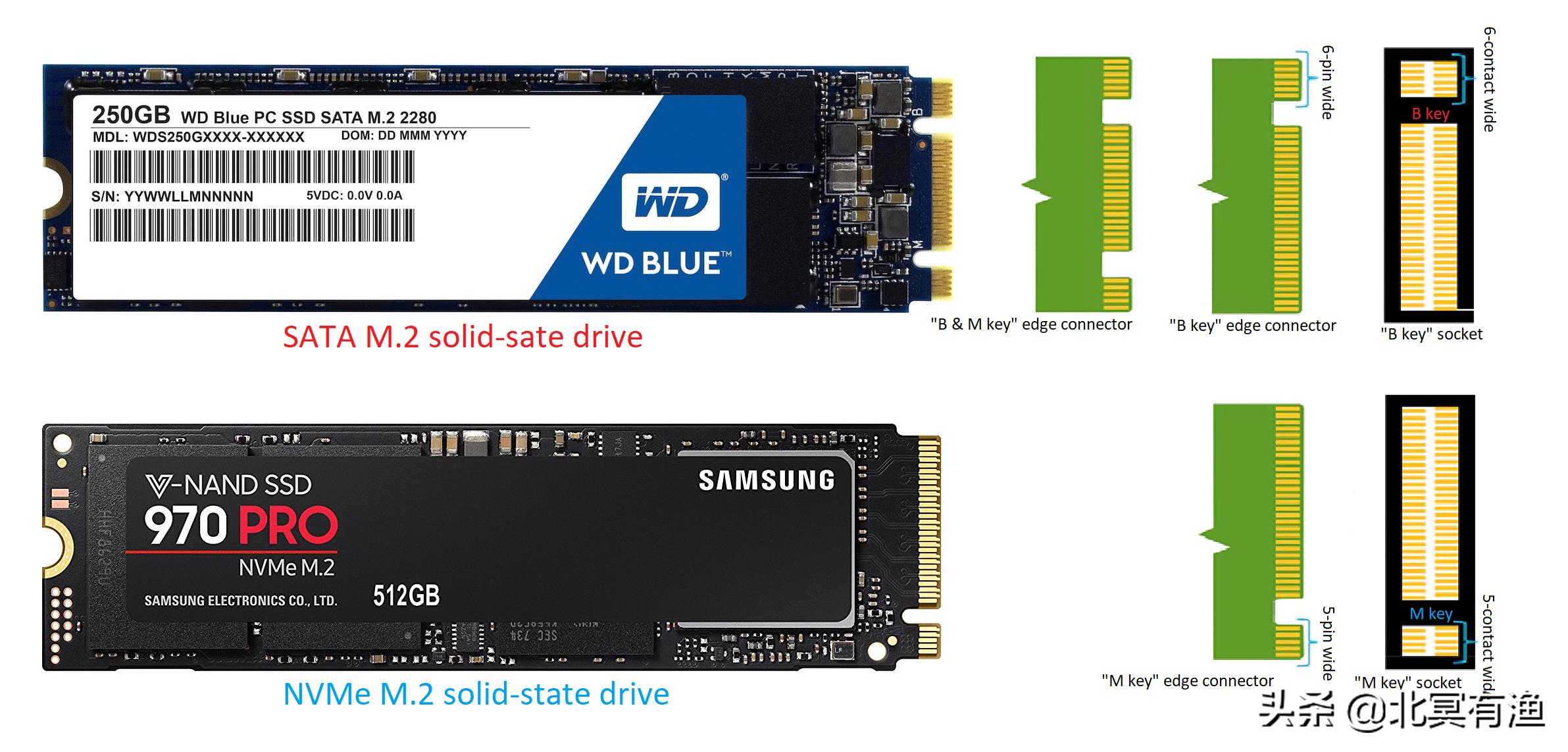 则是两者都有,市面的B-Key硬盘非常少见,具体差别可以看下图。