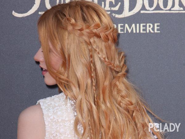 亮棕色的长卷发型,打造成沙宣发型的款式,很有一番风味,同时显得美眉皮肤更白皙有亮泽,头上的配饰装点,别致又有气质,公主范十足。