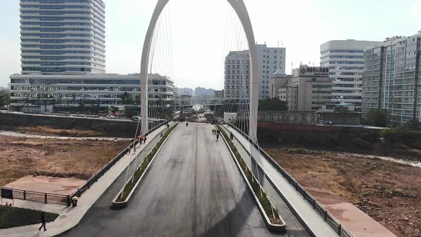 怀远桥作为五路一桥项目子项目,自修建以来,备受关注。经过3年的建设,怀远桥主体已建设完毕,彝族年前实现通车。