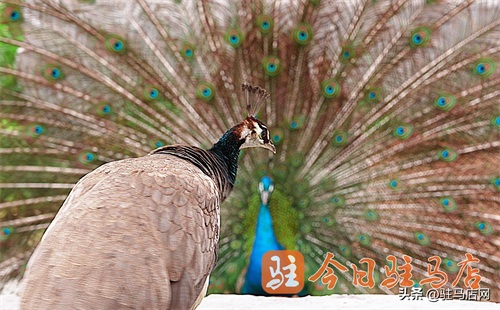 驻马店网讯(记者 王建成)2024年3月26日,记者在驿城区胡庙乡林业村一农家院看到,一只雄性蓝孔雀正以开屏的方式向雌性孔雀求偶。据悉,每年的三四月份是孔雀的求偶季,也是人们有机会观赏到的孔雀开屏的最佳季节。这样难得的场景,错过要再等上一年。