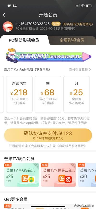 不过芒果tv现在很多的综艺节目和影视剧大多都是需要会员的,而且芒果tv的会员价格也并不便宜,如果大家只是平时偶尔使用一下芒果tv的会员的话,就有一些得不偿失了,而且芒果tv的会员平时没有活动的话,价格还是不低的。不连续包月的话都要25一个月了。