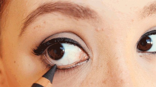 Step5.下内眼线,也是在睫毛根部画。一般日常妆的话,画半条就好了。这样看上去也比较自然。