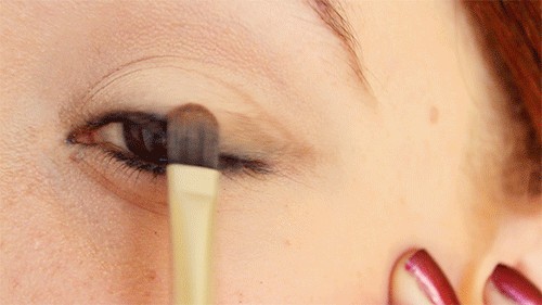 Step3.用带着一点点咖啡色的刷子,带过一下,眼窝位置。这里不用另外蘸取眼影粉。这样可以看上去更加立体!