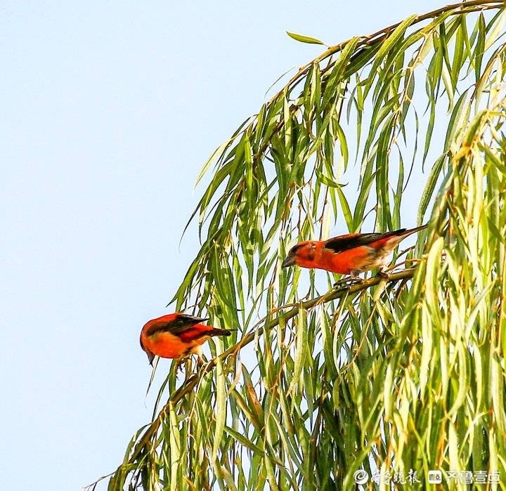 交嘴雀分为红交嘴雀和白翅交嘴雀,它们的上下喙并不能像其他鸟类合起来,而是上下交叉,上面的伸到下面,下面的伸到上面,就像字母“X”一样,因此吸引了很多摄影爱好者的目光。