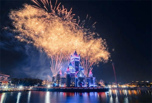 2月3日,郑州方特梦幻王国内烟花绽放,点亮夜空,美不胜收。春节期间,该度假区精心策划了一系列丰富多彩的春节主题活动,为广大游客带来了别样的节日体验。