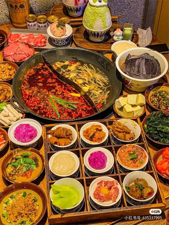 特别多小吃的爆辣火锅,甜品也特别好吃,超级多人排队吃。