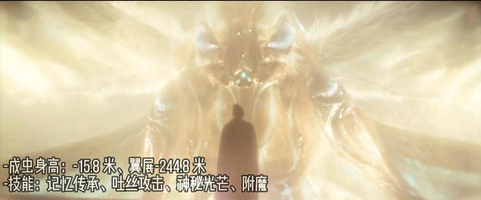 怪兽女王摩斯拉,自然秩序的良性代表成虫,翼展244.8米,技能技忆传承、吐丝攻击、神秘光芒附魔。