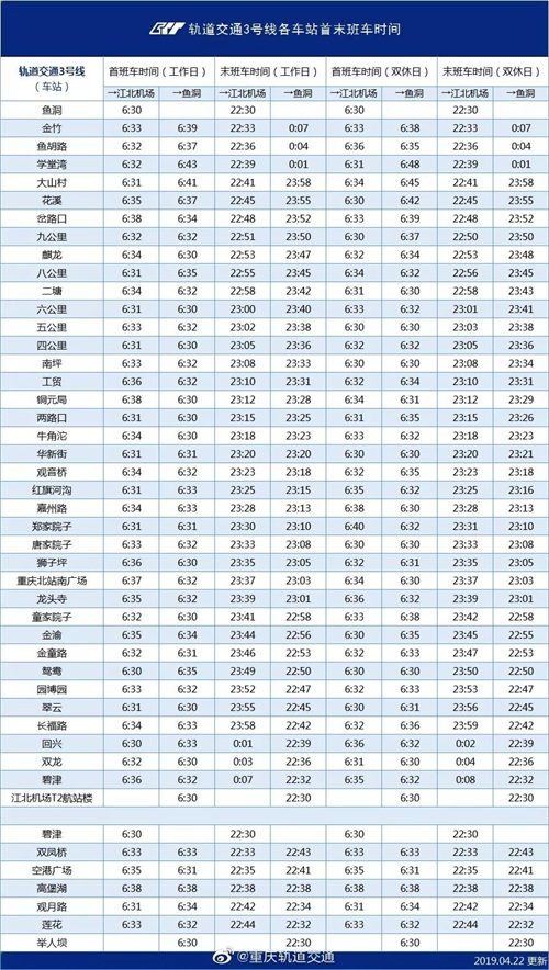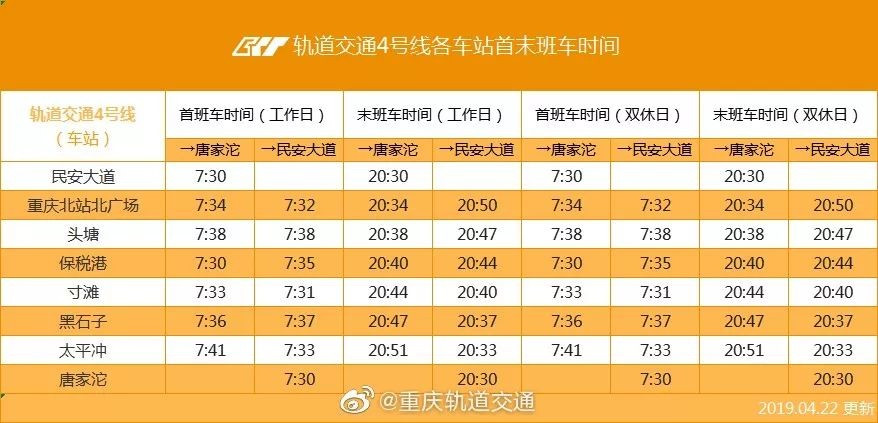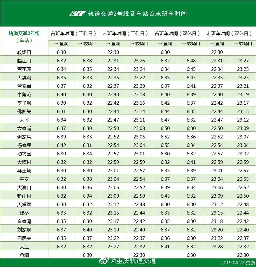 速度收藏!重庆轨道交通最新运营时刻表来了