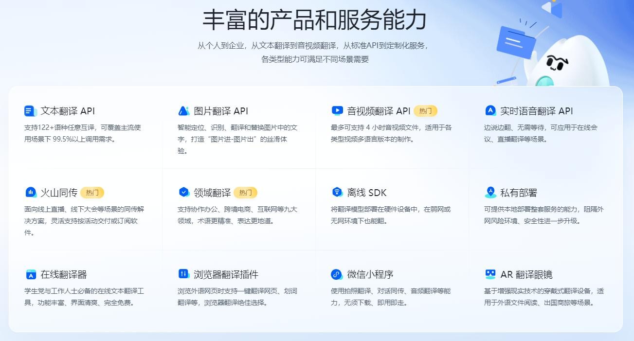 火山是字节跳动旗下机器翻译品牌。依托百亿级数据积累和行业前沿算法,火山翻译向企业客户提供翻译 API、火山同传等产品服务,适用于直播同传、海外内容翻译等场景。同时,我们也在浏览器插件、在线翻译器等产品上向个人用户提供丰富、便捷的翻译功能。